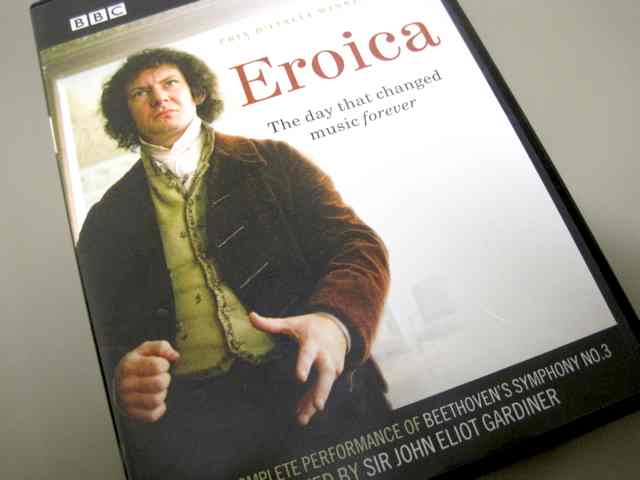 この革命的な交響曲の初演の時、聴衆の反応はいかなるものであっただろう。全編50分近い巨大な曲、娯楽とはほど遠く、激しく魂を揺さぶる未曾有の音楽を初めて耳にした聴衆の戸惑いが目に浮かぶ。そんな初演の様子を再現した映像がある。イギリスBBC作成の「Eroica」という映画(写真上)。