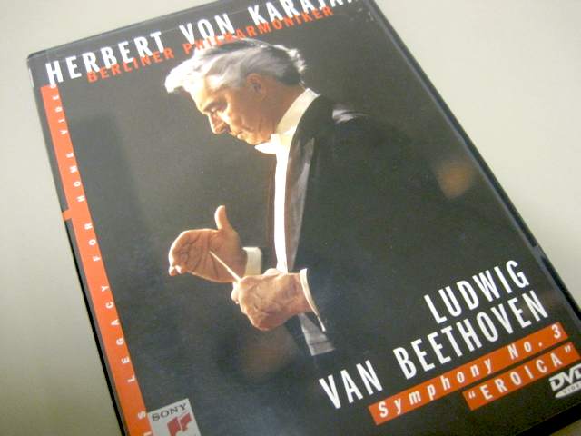 カラヤンの「英雄」は他にも多数発売されているので、くれぐれも間違いのないように。上の写真のカバーのDVDですよ。